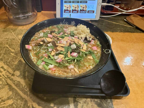 オーション麺と豚骨スープという、豚基本のような構成になっていて、スープの味わいも豚基本に近いような感じがしますね。