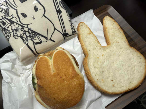 食パン以外にもうさぎのバンズといううさぎモチーフの商品も置いてあって、そのバンズを使って作った宇都宮ハムカツサンドというのも買ってみました。